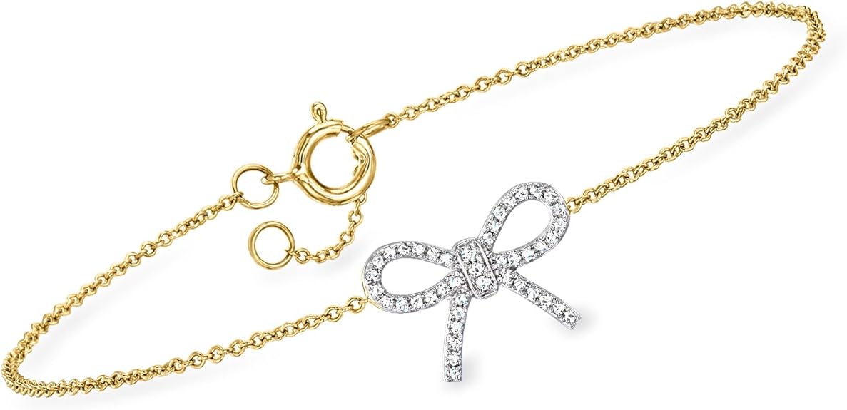 RS Pure by Ross-Simons 0.10 ct. t.w. Diamond Bow Bracelet in 14kt Yellow Gold
