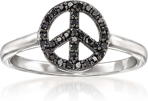 Ross-Simons 0.20 ct. t.w. Black Diamond Peace Sign Ring in Sterling Silver