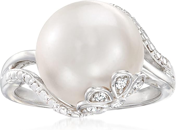 Ross-Simons 12-12.5mm Cultured Pearl Ring With Diamond Accents in Sterling Silver