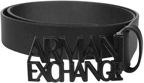ARMANI EXCHANGE Graphic Buckle Black Leather Belt 30" Black