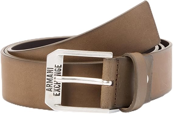 Armani Exchange Men's Destressed Leather Belt Black Olive, One Size