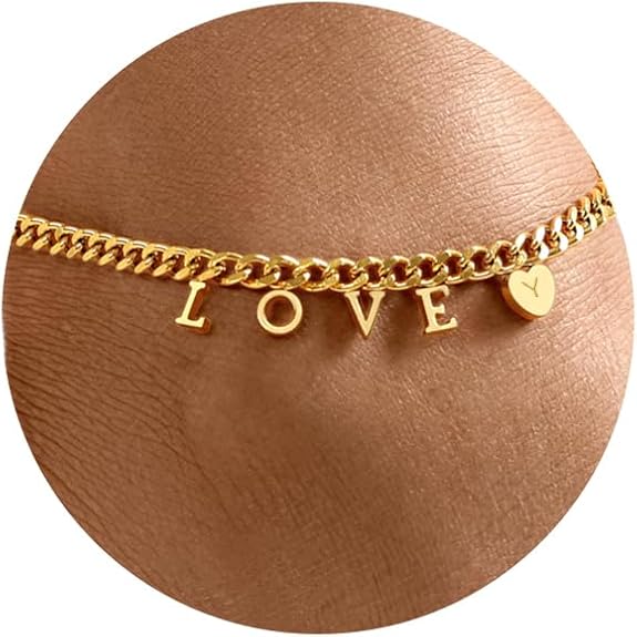 Ankle Bracelets for Women Teen Girl Gifts 18K Gold Plated Anklets for Women Waterproof Dainty Love Initial Anklet Link Summer Beach Vacation Letter A-Z Engraved Birthday Christmas Jewelry for Girlfriend Daughter