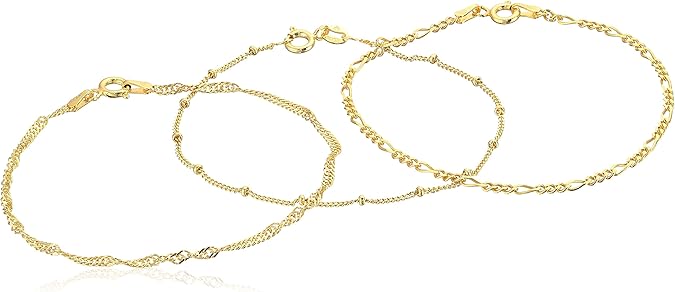 Amazon Essentials Set of Three Singapore, Figaro and Bead Station Chain Bracelet (previously Amazon Collection)