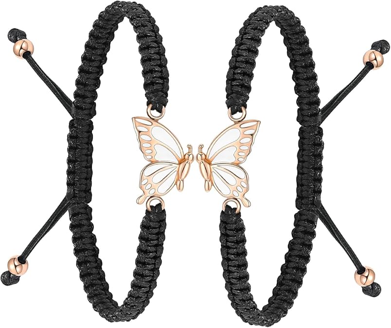 constantlife 2 Pack Butterfly Cremation Bracelet for Ashes Stainless Steel Urn Pendants Keepsake Braided Rope Adjustable Wristband Bangle Memorial Jewelry for Women Girls