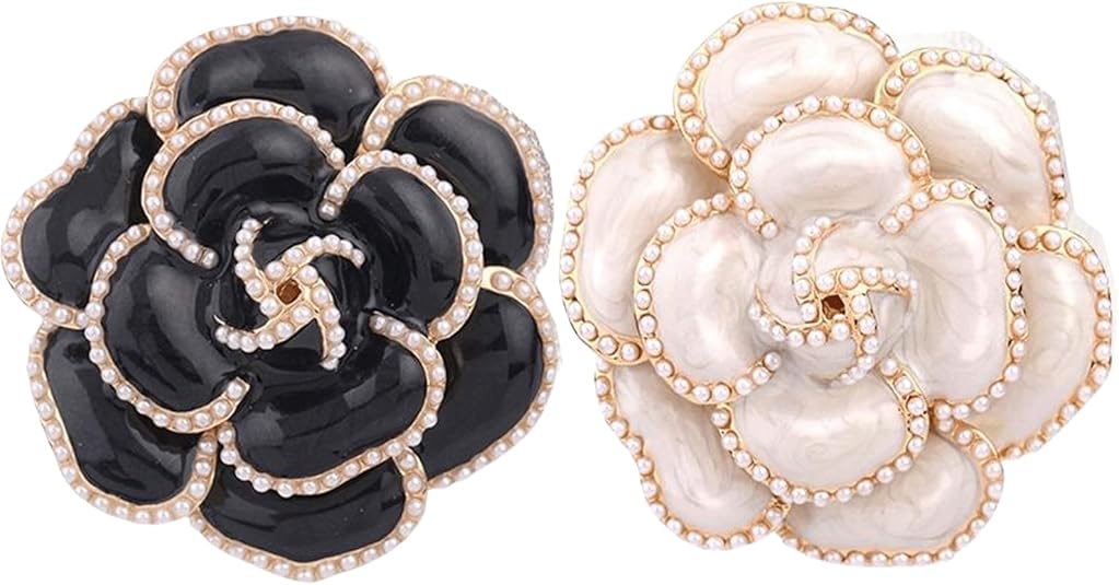 2 Pcs Camellia Flower Brooch Pins Elegant Faux Pearls for Women Dress Perfect for Party Wedding and Banquet