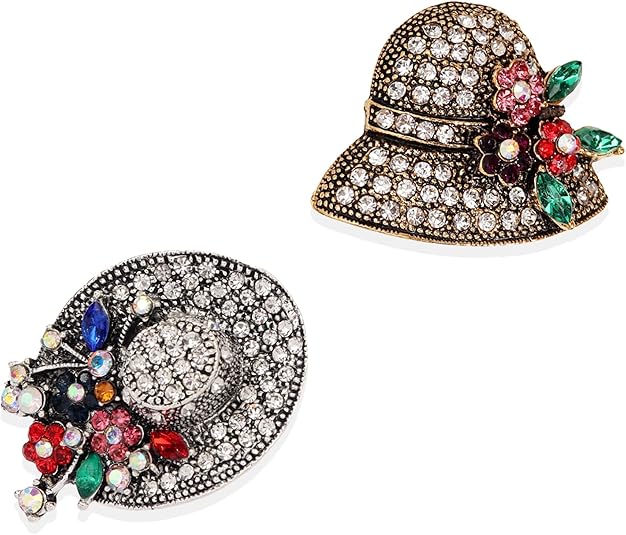2Pcs Retro Crystal Flower Hat Brooches Elegant Rhinestone Hat Statement Brooch Pins Fashion Jewelry Accessories for Women Girl Gift Gold