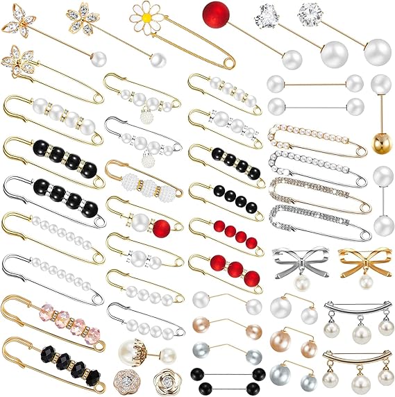 50 Pcs of Artificial Pearl Brooches Elegant Hat Safety Pins Decorative Dress Brooch Sweater Shawl Pin Collar Women Artificial Crystal Cardigan Clip Jewelry Girls Clothing Decoration Accessories