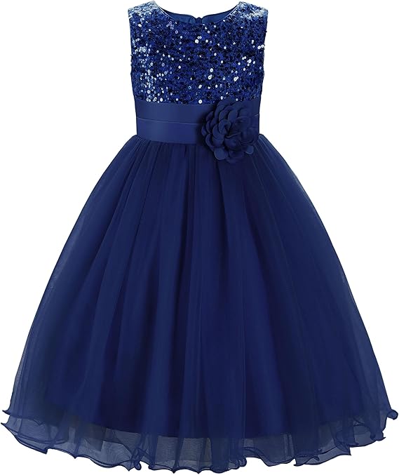 JerrisApparel Little Girls' Sequin Mesh Flower Ball Gown Party Dress Tulle Prom