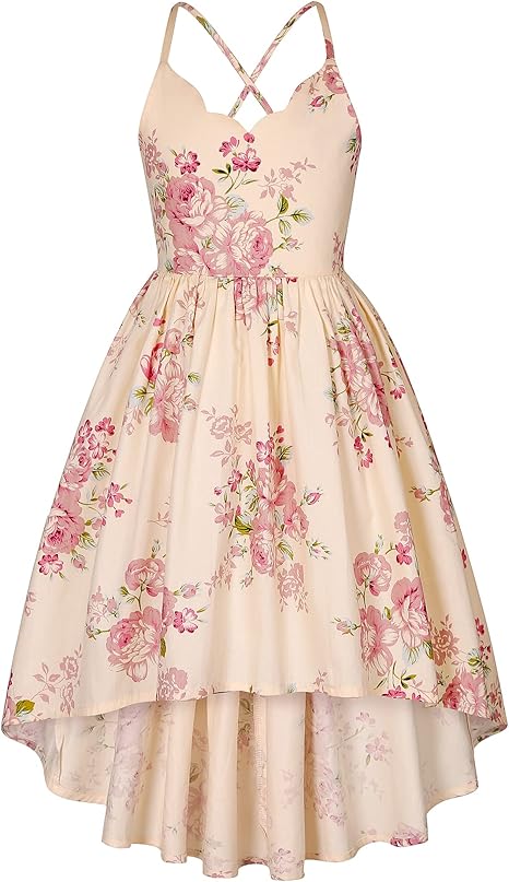 Jetfree Girls Floral Dress Ruffle Cami Beach Casual Sundress Cold Should Sleeveless Party Holiday Dress for Girls_†_