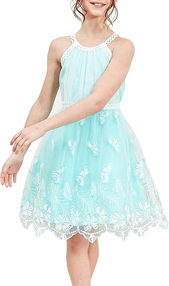 Sunny Fashion Girls Dress Turquoise Embroidered Halter Dress Party