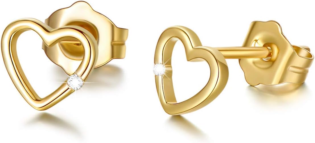 14K Solid Gold Heart Stud Earrings for Women, Natural Round Diamond Heart Studs Fine Love Jewelry for Mom, Wife, Girls, Teen 6mm (E-F, SI2)