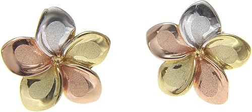 14k solid tricolor gold 13mm Hawaiian plumeria flower stud post earrings