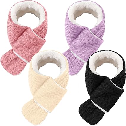 4 Pcs Kids Fleece Scarf Toddler Winter Warm Knitted Scarves for Girls Boys Adjustable 3-6 Unisex Cold Weather Gift