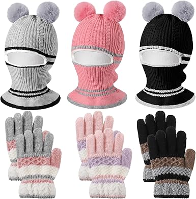 9 Pcs Kids Hood Scarf Gloves Set Kids Knit Hat Winter Thick Earflap Skull Caps Toddler Fleece Beanie Cap Balaclava for Boy Girls, 3 Style