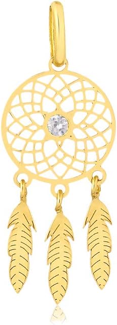 18k Yellow Gold Dream Catcher Feather Synthetic White Cubic Zirconia Drop Pendant for Necklace