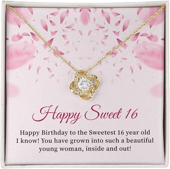 Happy Birthday Necklace Gift For Sweet 16 Girls, Happy 16th Birthday, Love Knot Necklace For Sixteen Years Old Teenage Girls, Happy Sweet Sixteen Bday Card Gift Ideas Necklace With Message Card And Gift Box Gift For 16 Years Old Young Women.
