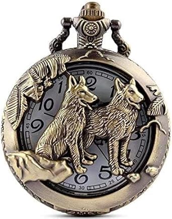 GORBEN Pocket Watch Retro Antique Animals Steampunk Pocket Quartz Movement Watches Box Gifts (Wolves)