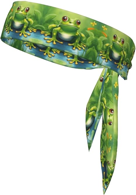 SSIMOO Cartoon Frog 1 Sports Head Tie, Double-Sided Headscarf, Headdress, Hair Band, Sweat Towel, Sports Bandage, Black