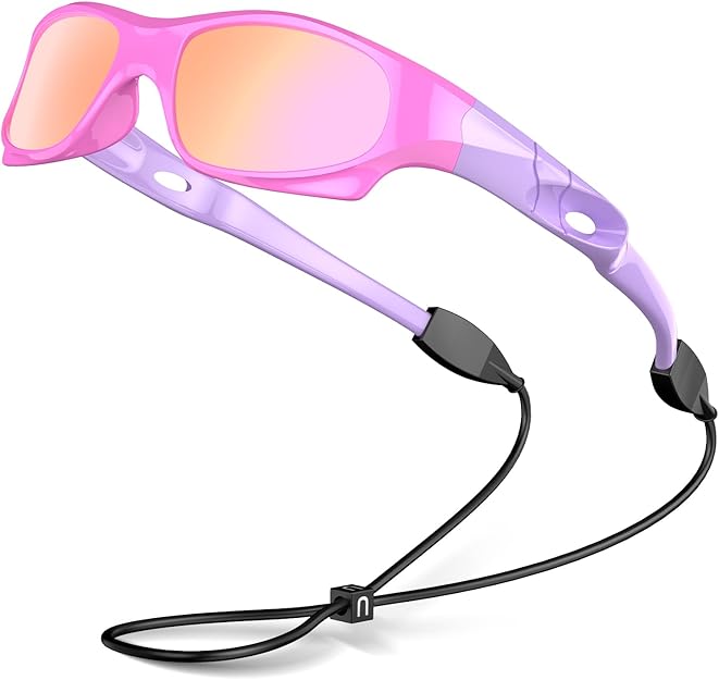 VATTER Kids Sunglasses Polarized UV Protection Sports Unbreakable Flexible Rubber Shades with Strap for Boys Girls Children