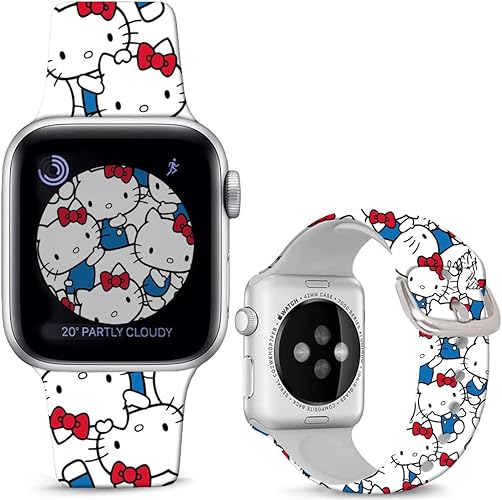 Compatible with Apple Watch Band Hello Ki Sweet Blue 49mm/46mm/45mm/44mm/42mm(Series 3 2 1) Soft Silicone Cute Fun Fancy Cartoon Strap Compatible with iWatch Series SE 10 9 8 7 6 5 4 3 2 1 Kids Girls Women