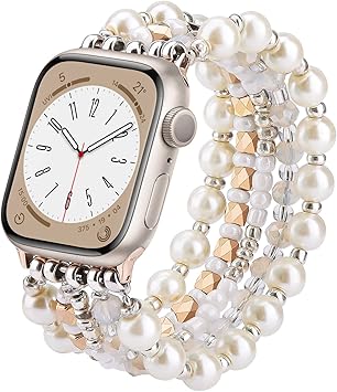 VISOOM Beaded Bracelet Compatible for Apple Watch Band 40mm/38mm/41mm/42mm Series 10 9 8 7 SE Series 6/5/4 Women Fashion Cute Handmade Pearl Beads Stretchy Watch Strap for iWatch Bands Series 3/2/1