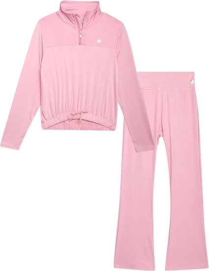 RBX Girls_Ñé Activewear Set - 2 Piece Pullover Hoodie or Quarter Zip Long SleeveTop and Flare Leggings for Girls (7-12)