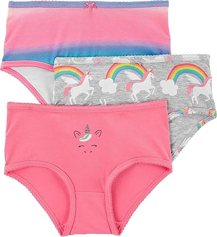 Carter's Big Girls' 3-Pack Stretch Cotton Panties, Unicorn(3h603710)/Rainbow, 10/12