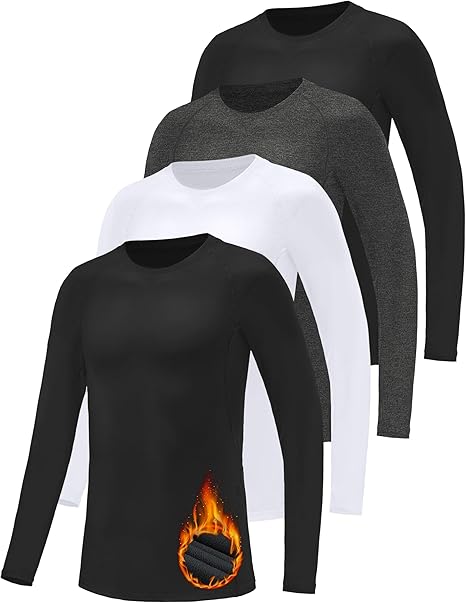 1/4 Pack Youth Boys Thermal Compression Shirts Long Sleeve Fleece Lined Athletic Base Layer Tops Undershirts for Kids