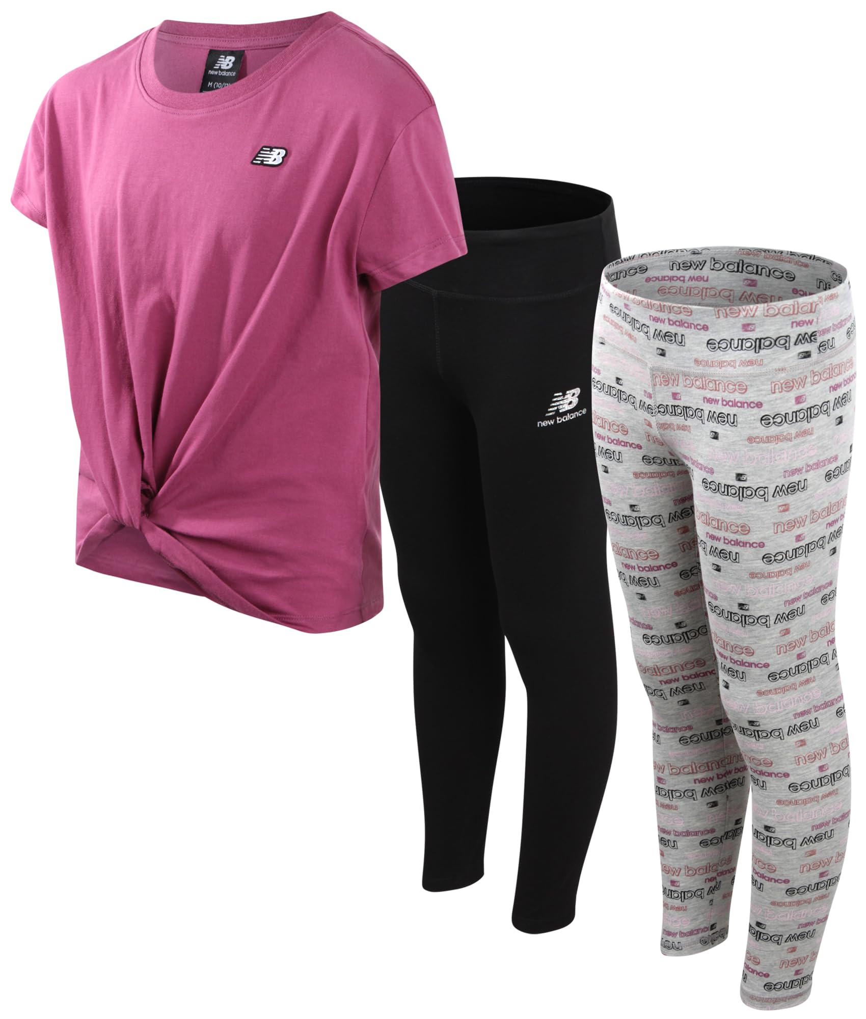 Details: New Balance Girls' Active Set - Short Sleeve Performance T-Shirt and Full Length Yoga Pants Activewear Set is sure to improve her game whether she's in the classroom or at the gym and bring a smile to her face. This activewear set for girls features a short sleeve crew neck performance T-shirt and a two pack of ankle length yoga pants with an elastic waist closure, great for casual wear or exercise. Solid colors stamped with the New Balance logo make this sweatsuit a fashionable choice for your daughter. High Quality skin friendly fabric of these ankle length pants for girls breathes well to keep her comfy. She'll want to wear these pants all day long. Versatile - Available in a variety of colors, this girls' jogging set can be also worn as loungewear; Wear the complete outfit or mix and match. Proper Fit - The elastic waistband stretches to accommodate in-between sizes and provides a snug fit that won't restrict her movement. Multipack - This active performance girls' T-shirt and yoga pants 3-piece set includes different colors to fit your daughter's unique style. Buy several packs and stretch out her summer wardrobe. Easy to Clean - Simple to machine wash and dry; Please Reference the Variations for all Available Sizes and Colors. New Balance Offers Premium Clothing at Affordable Prices because we value every customer that visits our listings! Stop by Our Storefront to See the Rest of Our Great Deals; we're confident you're going to find items that anyone who needs a gift will really appreciate!