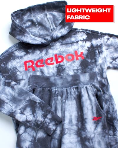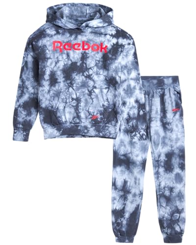 Reebok Girls Sweatsuit - 2 Piece Performance Fleece Sweatshirt and Jogger Sweatpants - Tie Dye Activewear Set for Girls, 7-12, Size 7, Tie Dye White