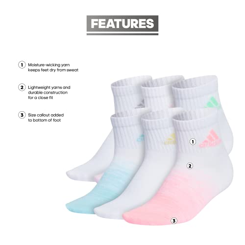 Details: Colorful socks to match the most vibrant outfits. These girls' quarter-length adidas socks are lightweight yet sturdy so they'll hold up through fun-packed days. The moisture-wicking yarn keeps feet dry and comfortable.