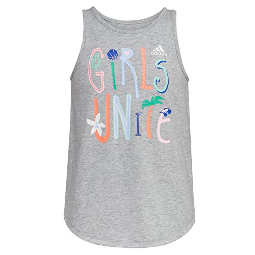 Details: Positive vibes and happiness. That's the spirit behind this girls' adidas tank top. An empowering message and heartfelt graphic seal the deal. It's slightly longer in back, so she can move in comfort. Wash, wear and repeat.