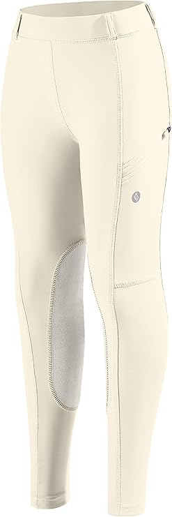 SANTINY Girls Horse Riding Pants with Zipper Pockets Kids Stretchy Equestrian Breeches Knee-Patch Youth Schooling Tights