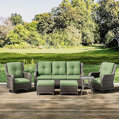 Joyside Wicker Patio Furniture Set 6 Piece Set with 1 Three-Seat Sofa, 2 Swivel Rocker Chairs, 2 Ottomans and 1 Side Table, Outdoor Furniture Patio Conversation Sets(Mixed Grey/Green)