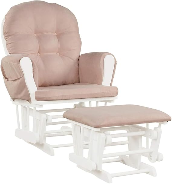 Ottoman Glider Rocking Chair for Nursing Mums, Elderly, Mothers, Wood Heavy Duty with Cushion, Adjustable Backrest Rocker for Living Room Set Baby Nursery TV Lounge Room (Pink)