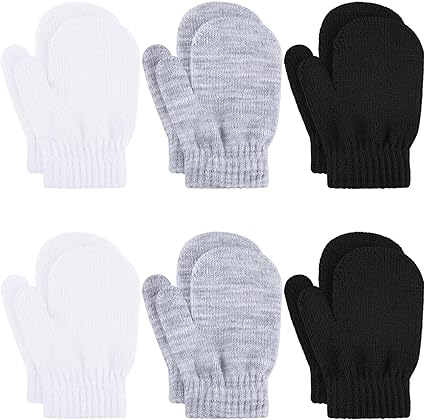 Glooarm 6 Pairs Toddler Mittens Winter Baby Mittens Gloves Kids Knitted Magic Mittens Bulk for Boy Girls