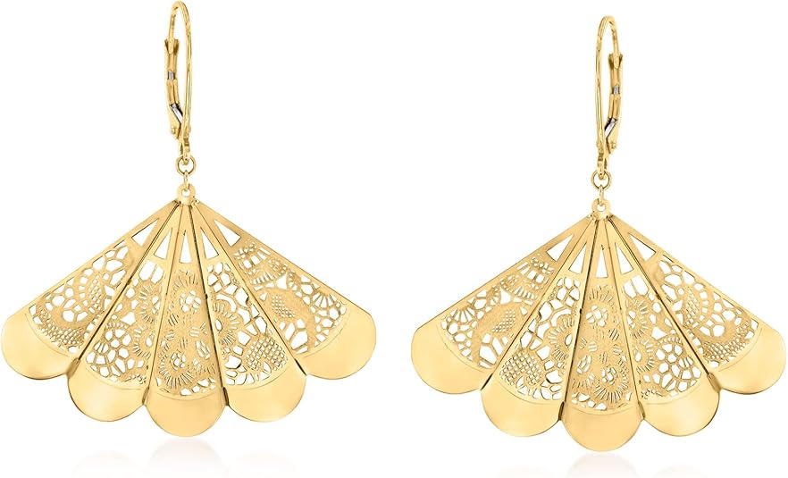 Ross-Simons Italian 14kt Yellow Gold Fan Filigree Drop Earrings