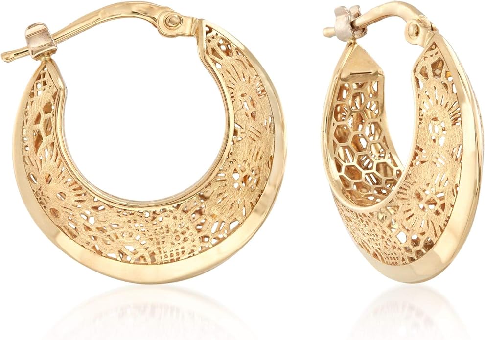Ross-Simons Italian 18kt Yellow Gold Floral Openwork Hoop Earrings