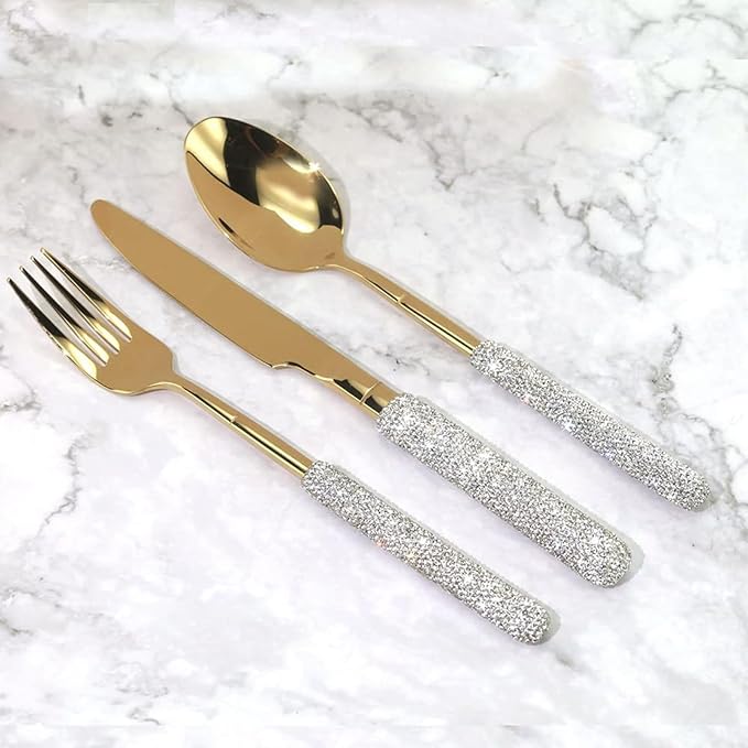 36-Piece Diamond Gold Silverware Set Service for 12, Luxury 18/10 Stainless Steel Flatware Set, Kitchen Tableware Set, Cutlery Set for Home and Restaurant, Knife Fork Spoon Set, Dishwasher Safe (36 pcs)
