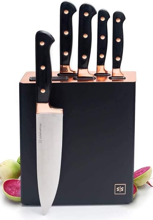 Copper Knife Set, A Knife Set with Sharpener Built-In, Upright 7-Piece Rose Gold Knife Set - Self Sharpening Knife Set With Block, Rose Gold Kitchen Accessories