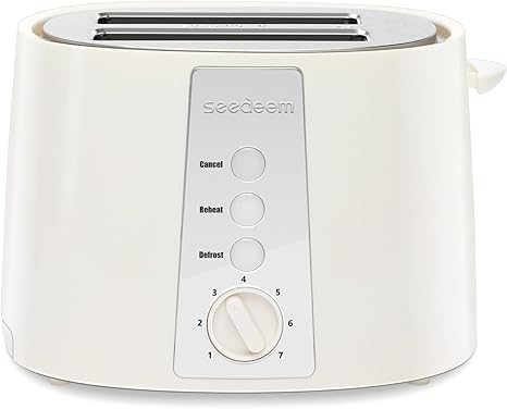 SEEDEEM Toaster 2 Slice, Extra Wide Slot Toaster, 7 Shade Settings, Bread Toaster with Cancel, Defrost, Reheat Function, Extra Wide Slots for Waffle or Bagel, Removable Crumb Tray, 750W, Cream White