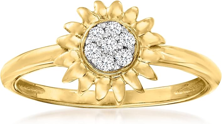 Ross-Simons 0.10 ct. t.w. Diamond Sunflower Ring in 18kt Gold Over Sterling