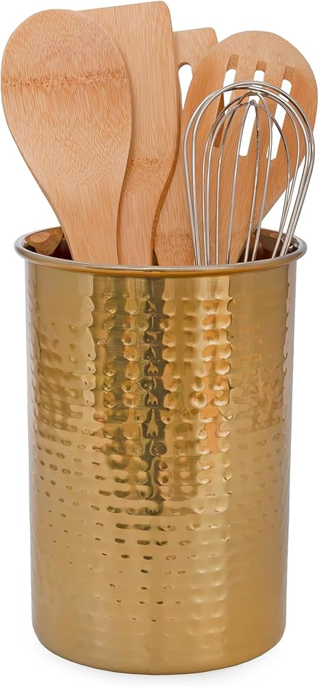 Darware Hammered Gold Kitchen Utensil Holder / 7-Inch Tool Caddy, Store All Your Wooden Spoons, Spatulas, & More