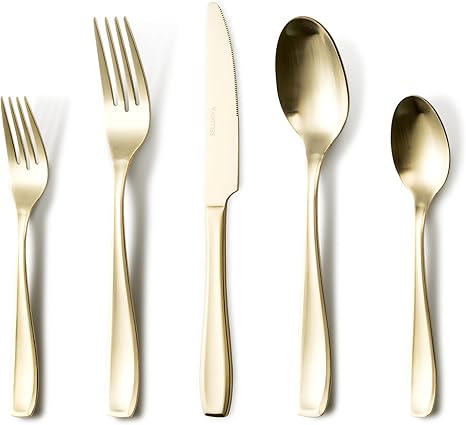 Silverware Set for 6, 30 Piece Stainless Steel Flatware Set, Satin Finish Cutlery Utensil Set, Dinner Fork Knife Spoon Tableware Set for Home Kitchen, Dishwasher Safe, Matte Champagne Gold