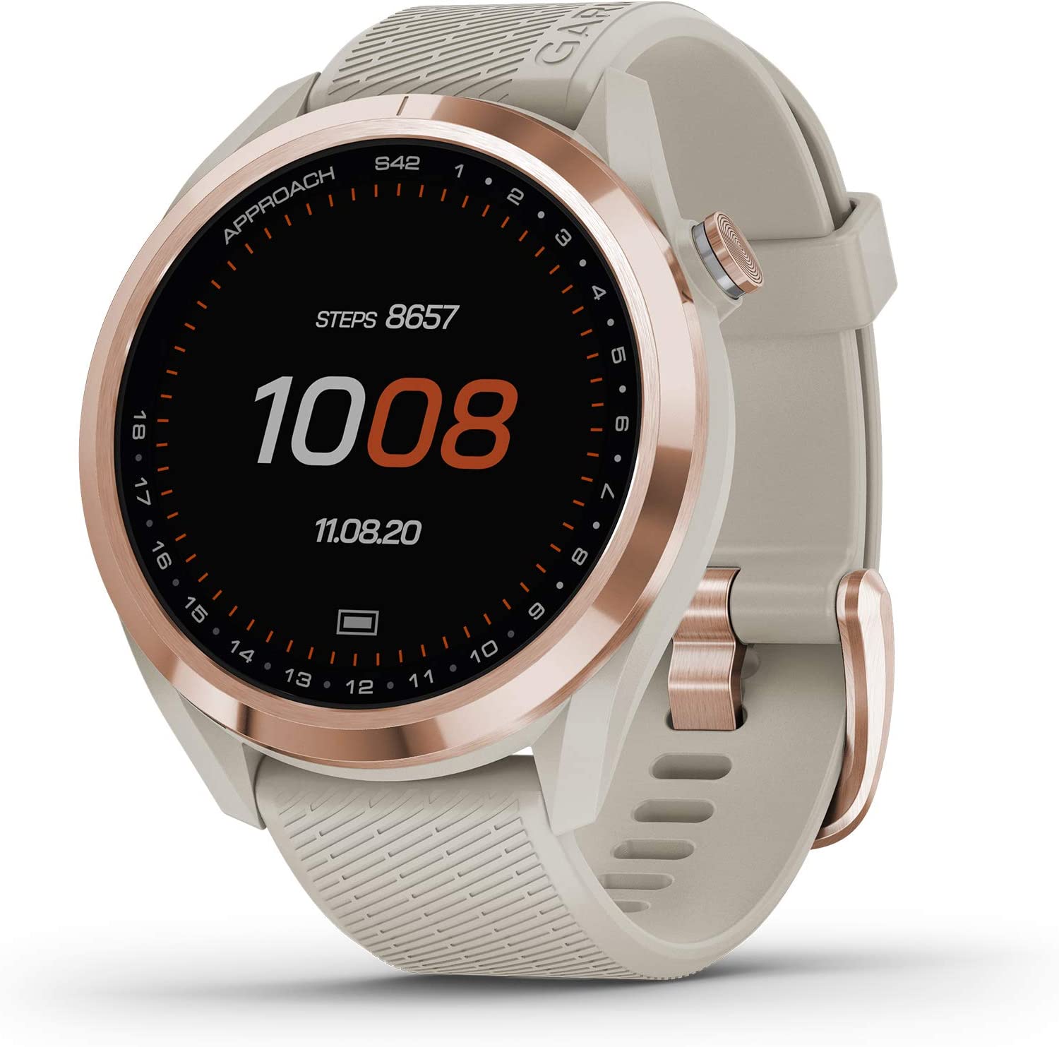 Garmin Approach S42, GPS Golf Smartwatch, Lightweight with 1.2" Touchscreen, 42k+ Preloaded Courses, Gunmetal Ceramic Bezel and Black Silicone Band, 010-02572-10