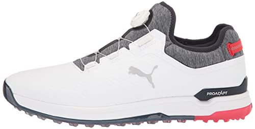PUMA Men's Proadapt Alphacat Disc Golf Shoe, White/Navy Blazer/High Risk Red, 10