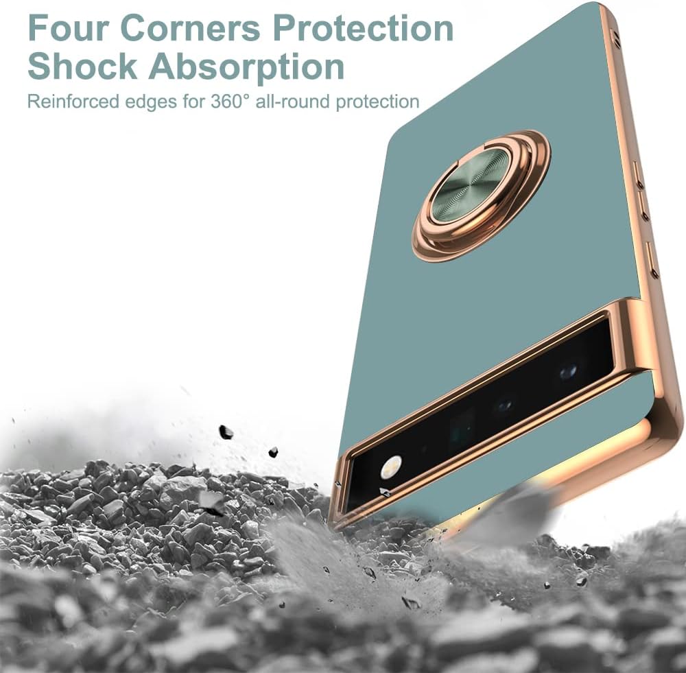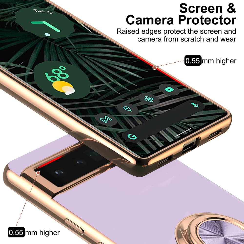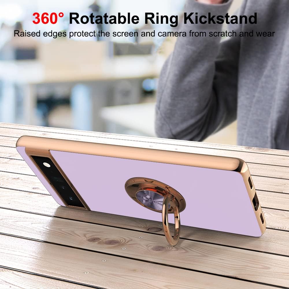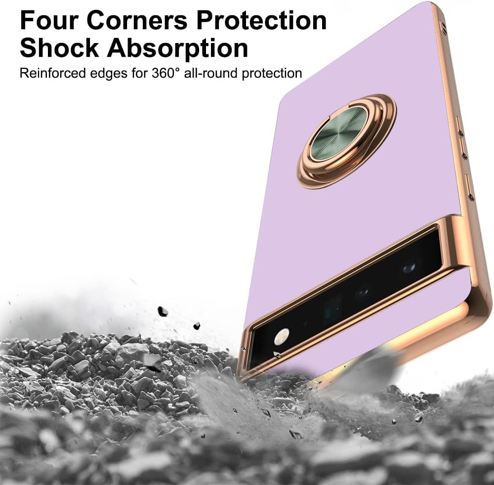 Aitipy for Google Pixel 6A Case, Built-in 360 Rotation Ring Holder with Screen Protector & Camera Lens Protector, Luxury Shiny Electroplated Edged Shockproof Protective Phone Cover (Black/Golden)