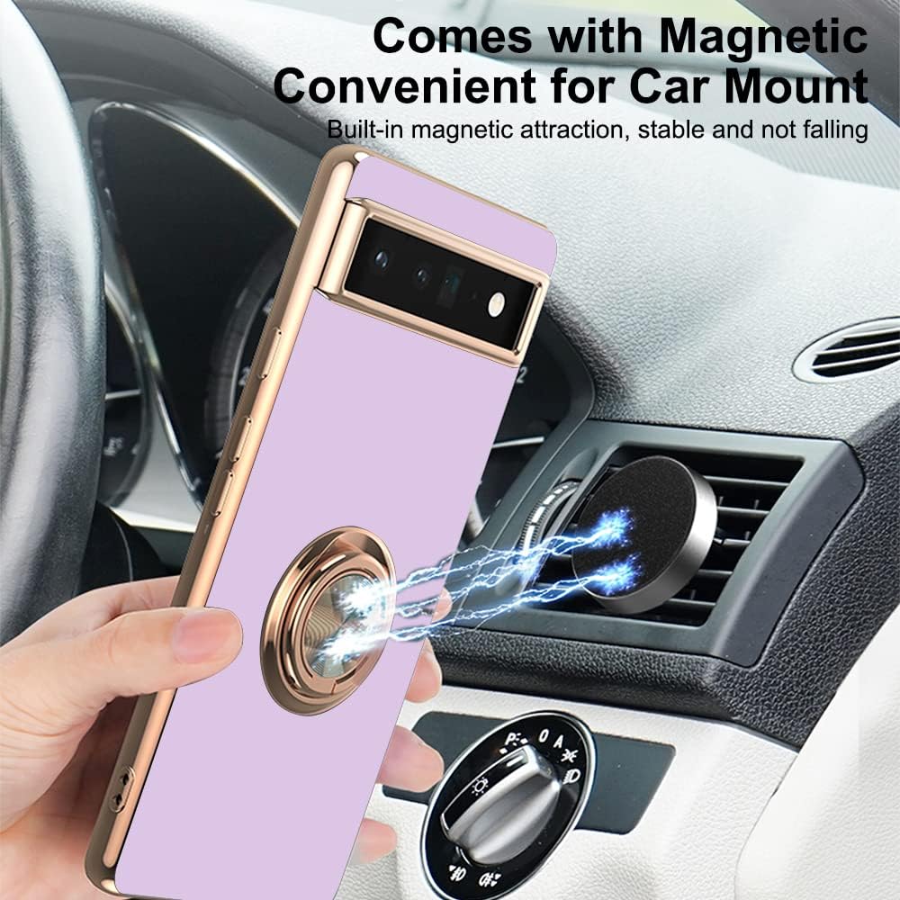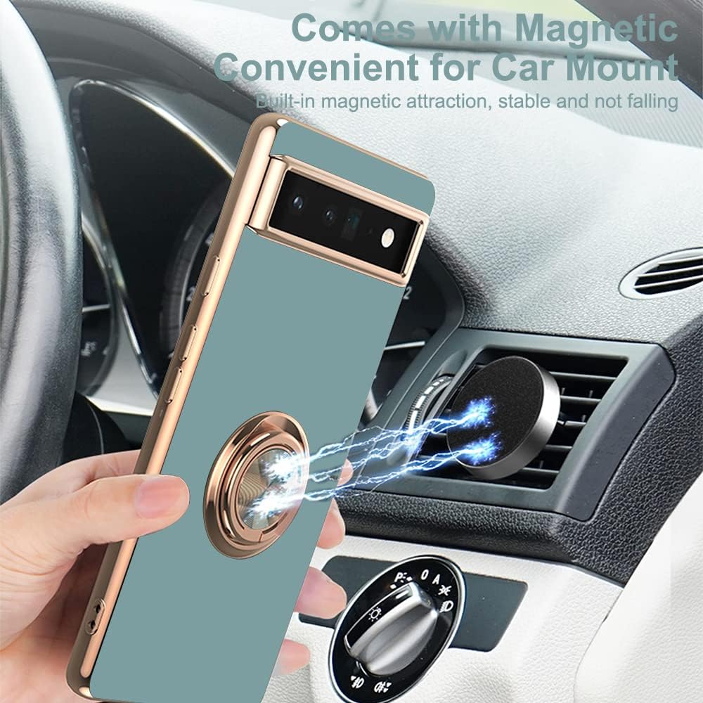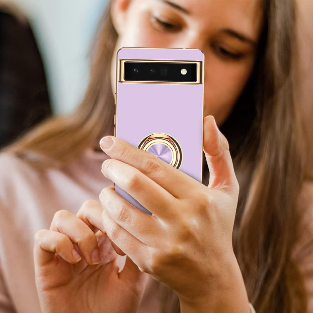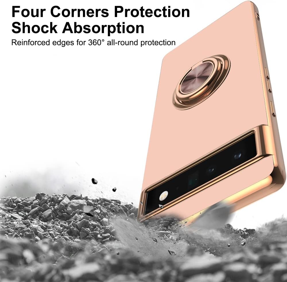 Aitipy for Google Pixel 6A Case, Built-in 360 Rotation Ring Holder with Screen Protector & Camera Lens Protector, Luxury Shiny Electroplated Edged Shockproof Protective Phone Cover (Black/Golden)