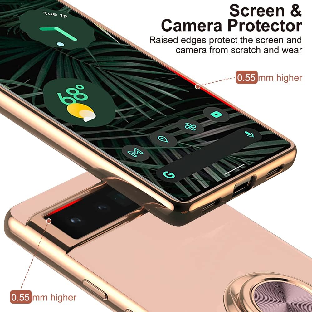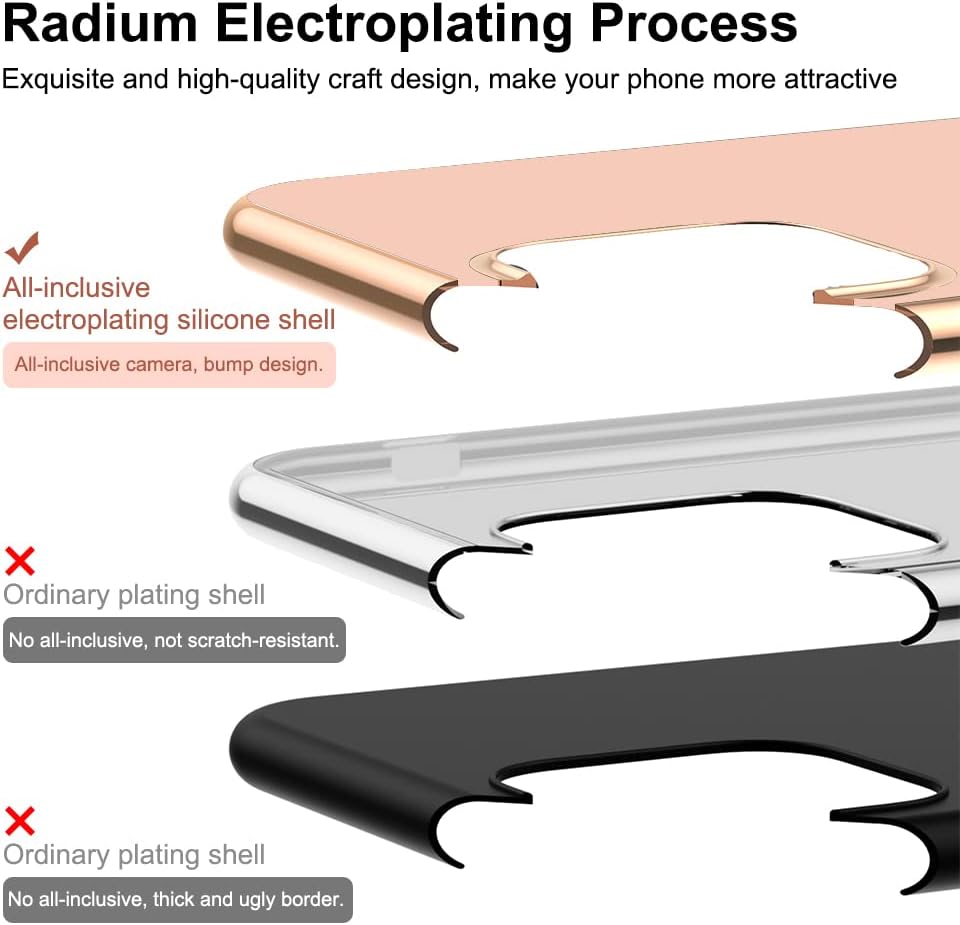 • 【Design】 The bumper edge of the shell and the edge of the camera, ring stand is made of electroplating, Plating gold finish never pealing off, makes your phone more fashionable and luxurious.