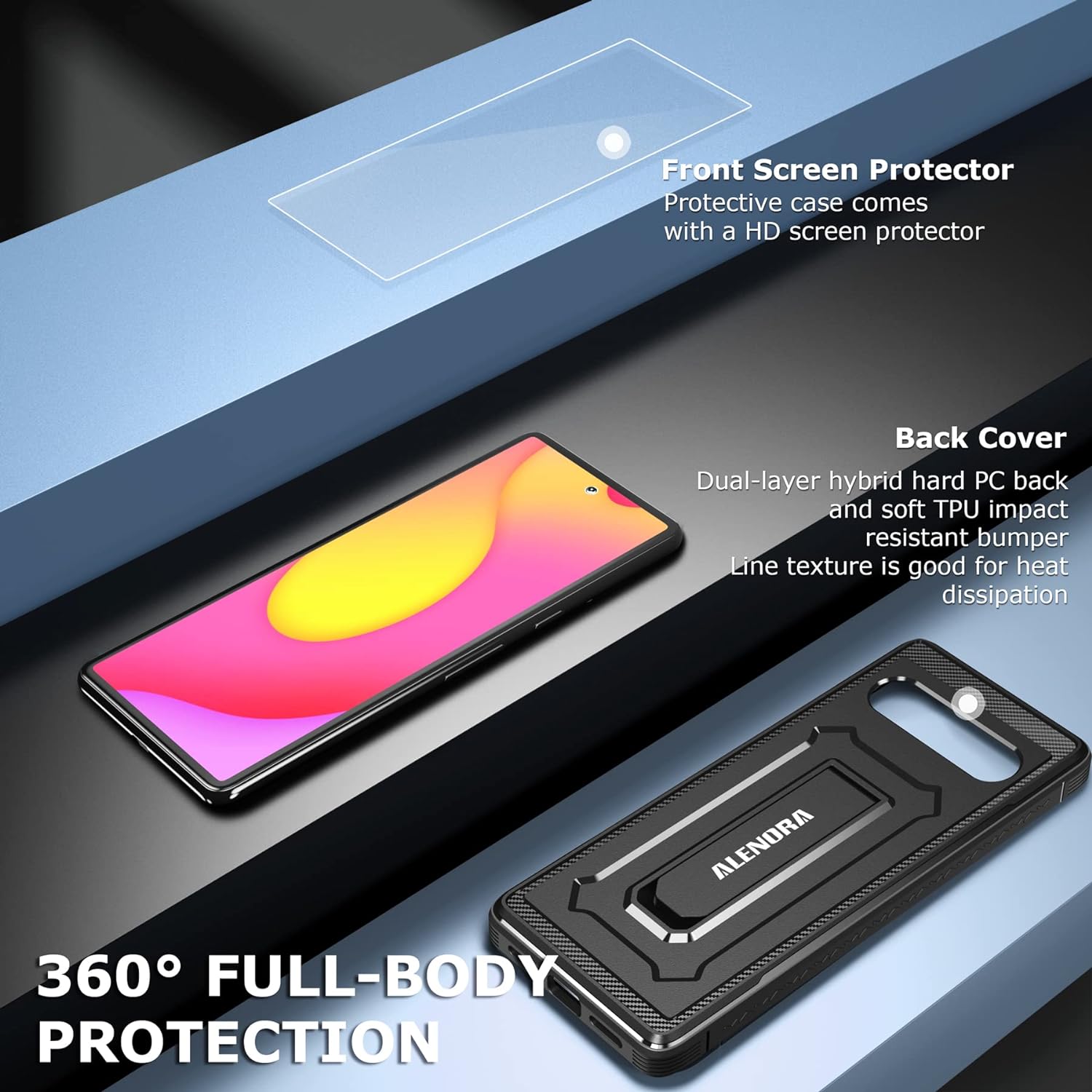 ALENORA Compatible with Google Pixel 7 Case [1Pack Screen Protector] Military Grade Protection Shockproof Rugged Bumper Cover with Stand for Google Pixel 7 Phone (Yellow)